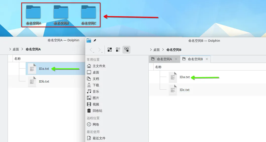 - 右侧的 ID a.txt 表示为 命名空间 B:ID a.txt
